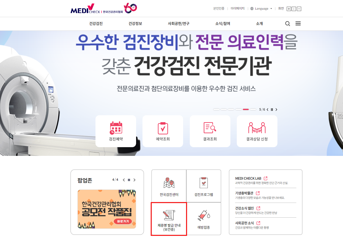 📍 보건기관 방문 없이 집에서 간편하게 온라인을 통해 제증명 발급을 신청하고 출력하실 수 있습니다. (일부 보건기관 제외)공공보건포털(e보건소)은 공공보건의료기관(보건소, 의료원 등)의 내역만 조회가 가능합니다. (사립병원 제외)