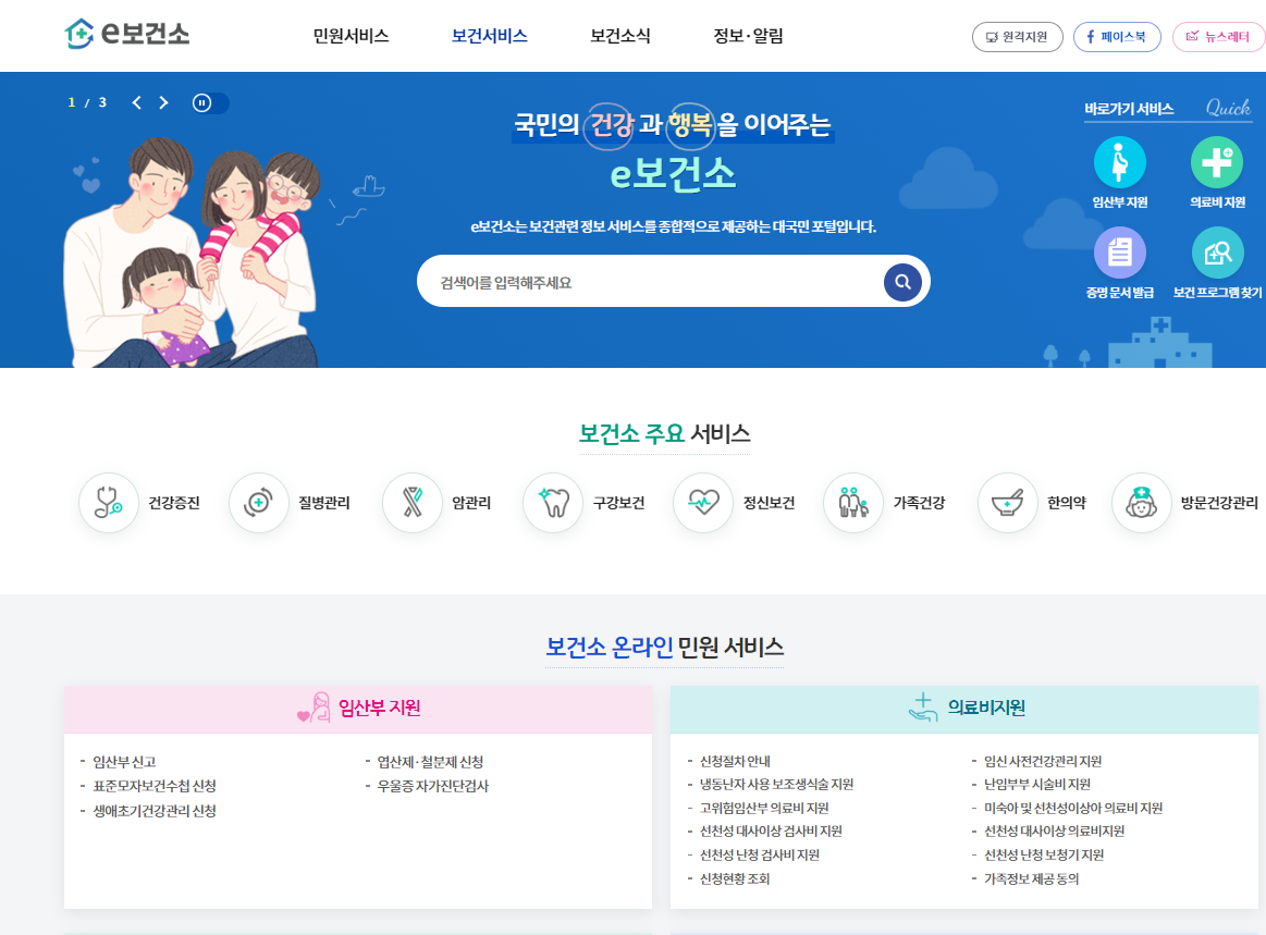 📍 보건증 발급이 가능한 병원을 확인하기 위해서는 먼저 내 e보건소 홈페이지에 들어가서 내주변 보건소를 확인 해야합니다.