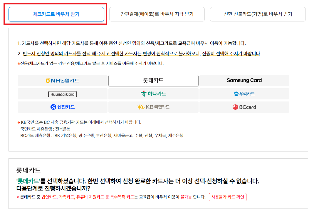 ➰ 이용불가카드 : Only 법인카드, 후불하이패스카드, 하나 BC(토스포함), 가족카드, 바우처카드(꿈사다리 카드 등)