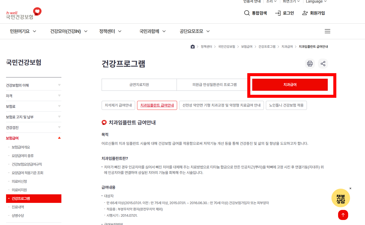 임플란트 건강보험 본인부담률